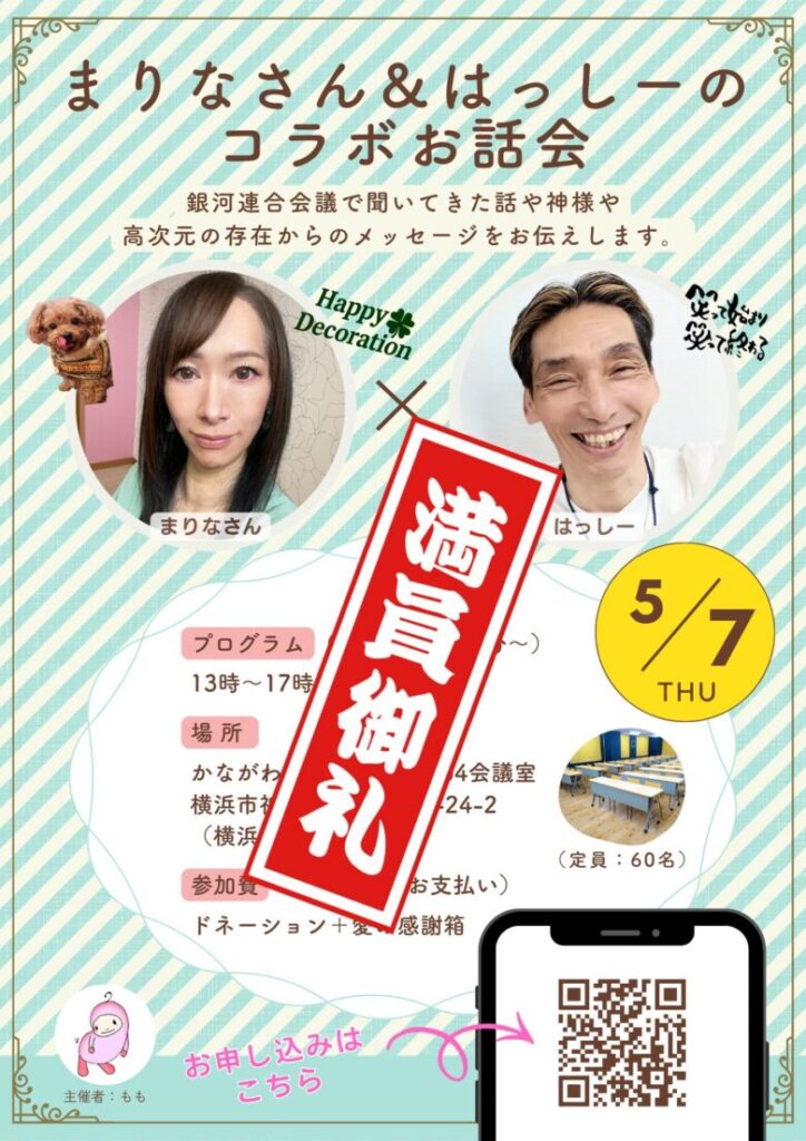 ✅【5/7(木)横浜】まりなさんとはっしーのコラボお話会